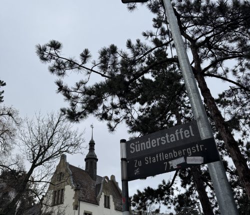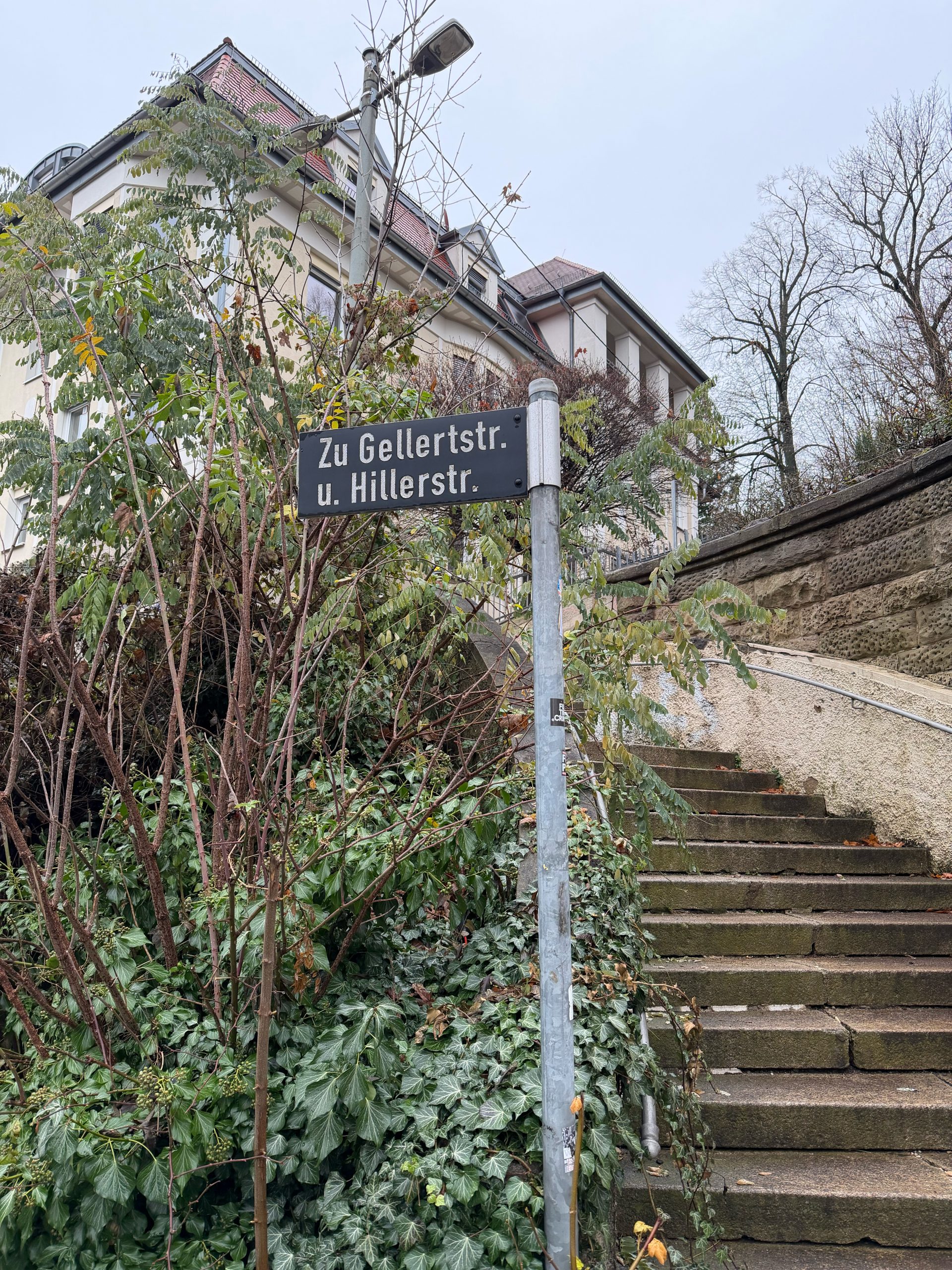 Der nächste Weg führt uns auf die Gerokstaffel. Benannt wurde sie 1909 nach Karl von Gerok, einem Theologen und Dichter. Schon die ersten Schritte machen deutlich, warum Stuttgart die „Stadt der Stäffele“ ist: Hier geht es ordentlich bergauf, immer begleitet von tollen Ausblicken und charmanten Altbauten, die den Hang säumen.