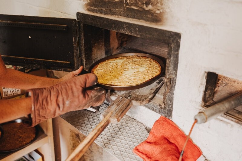 Besonderer Nachfrage erfreuen sich die echten Bauernkuchen mit Peterling- und Zwiebelrahm. Sie werden wie zu Großmutters Zeiten zubereitet und in alten Holzbacköfen gebacken. Das historische Backhaus ist in das Festgelände integriert und wird während der Festtage hierfür genutzt.